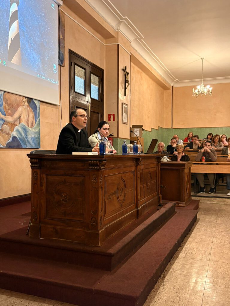Después escuchamos una charla formativa sobre la última encíclica del Papa Francisco, 𝘿𝙞𝙡𝙚𝙭𝙞𝙩 𝙣𝙤𝙨, oyendo atentamente las palabras pronunciadas por D. José Javier Alumbreros.