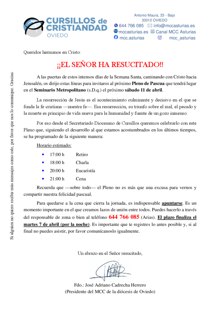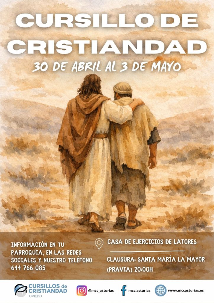 Del próximo 30 de abril al 3 de mayo se celebrará (s. D. q.) en la casa de ejercicios de Latores un Cursillo de Cristiandad. Si aún no eres cursillista, apúntate a este maravilloso encuentro con el Señor donde descubrirás lo esencialmente cristiano.